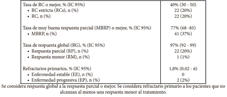 Tabla 3. Respuesta al tratamiento de inducción (n:110)