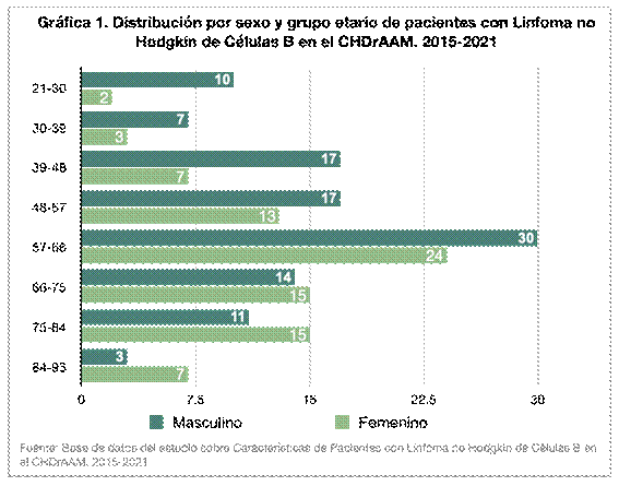 Fuente: Base de datos del estudio sobre características de paciente con linfoma no Hodgkin de células B en el CHDrAAM. 2015-2021 |