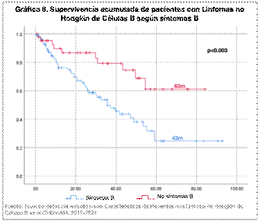 Results. 53% of the patients were male and 47% were female. 74.8% debuted in advanced stages of the disease, associated with a similar percentage reporting B symptoms. Diffuse large B cell lymphoma represents the most common subtype with more than 60% of registered cases. LDH values >500 U/L and the presence of B symptoms were associated with lower overall survival.