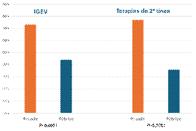 Figura 17. Comparación entre los sectores público y privado en la disponibilidad de IGEV y en las terapias de 2ª línea en TI