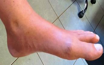 Figura 2. Hiperpigmentación y edema de miembro inferior izquierdo.
