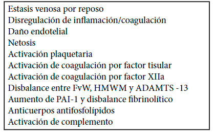 Tabla 1. Mecanismos descriptos para activación de coagulación en COVID-19